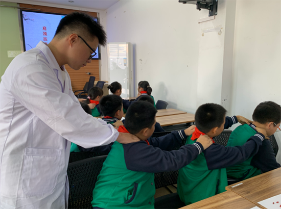 “爺爺奶奶,我給您捏捏肩!”在實踐環節中,衛校學子們現場教學了一套簡單的肩頸按摩手法。他們耐心示范,指導小學生們掌握按摩要領,并鼓勵大家回家后為長輩按摩,用實際行動表達孝心。小朋友們學得認真,紛紛表示要回家給爺爺奶奶一個“驚喜”。