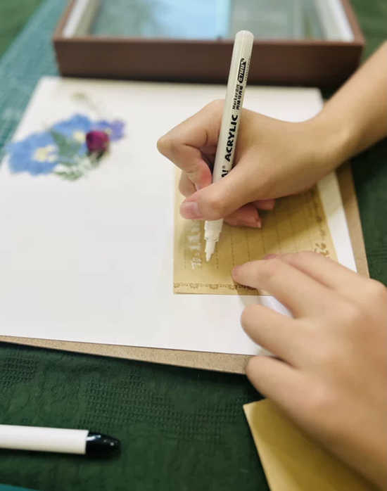 隨后,大家親手挑選干花,設計制作獨一無二的鮮花相框。視覺的美感與手作的專注,本身就是一種極佳的療愈。每一片花瓣的粘貼,都是內心秩序與美好的重建。