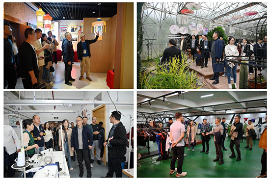 考察團一行在副校長何家輝帶領下參觀海職高校園、硤石燈彩非遺傳承基地、航空實訓基地、新能源汽車實訓中心、皮革服裝實訓中心、直播孵化基地、園林實訓基地,深入了解海職高的校園文化和產教融合情況。