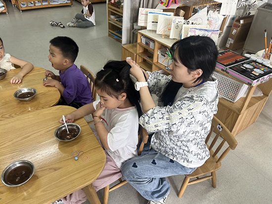 見習期間,同學們完全融入了幼兒園一日的常規流程之中,親身觀察并參與了幼兒在園的每一個環節。從清晨充滿關懷的“來園與晨檢”,到活力四射的“早操活動”;從寓教于樂的集體“教育活動”,到細致入微的“生活活動”(盥洗、進餐、午睡等);再從充滿童趣與創造力的“游戲活動”,到最終溫馨的“離園”告別。每一個環節都構成了同學們寶貴的見習課堂。他們不再是理論的被動接收者,而是化身為實踐的主動探索者,在真實的場景中理解幼兒的行為與心理,學習如何組織活動、如何與幼兒有效互動、如何做好班級管理和保育工作。
