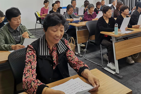 “都說你的花朵真紅火,都說你的果實真豐碩……”當天的新雙梅社區禮堂內,30 余名社團成員和部分社區居民歡聚一堂,嘹亮的歌聲穿透門窗。授課教師吳丹化身“音樂向導”,用接地氣的講解拆解《祝福祖國》的演唱技巧,從站姿規范到發聲位置定位,再到氣息控制的實操要領,每一個細節都傾囊相授。無論學員是零基礎的 “音樂小白”,還是有基礎的愛好者,都能在沉浸式課堂中收獲實用的樂理知識,在老師的逐句指導下放聲高歌,展現出飽滿向上的精神狀態。?