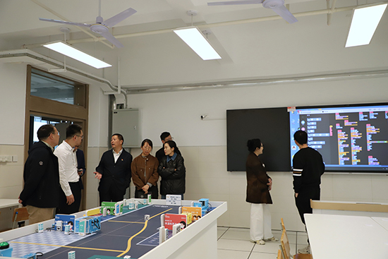 在鄞州職高校長張武劍的陪同下,高校與企業(yè)代表一同參觀了學(xué)校的數(shù)字綜合實(shí)訓(xùn)室、百度AI綜合實(shí)訓(xùn)室、數(shù)智職業(yè)體驗(yàn)中心、數(shù)智星工場、AI科創(chuàng)實(shí)訓(xùn)室等現(xiàn)代化教學(xué)實(shí)踐場所。參觀過程中,各方代表對學(xué)校先進(jìn)的設(shè)施設(shè)備、豐富的教學(xué)場景以及濃厚的數(shù)智化育人氛圍給予了高度評價(jià)。