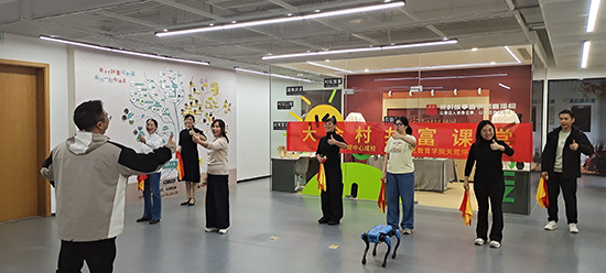 培訓結束后,參訓學員張文學阿姨說:“用英語講《余村故事》快板,感覺真是很新奇!而且還有絕影機器狗的參與,感覺很有勁!”“是啊!特別是今天這個藝術老師的專業培訓讓我們的雙語快板更有型了!”學員周夏斌接著說道。