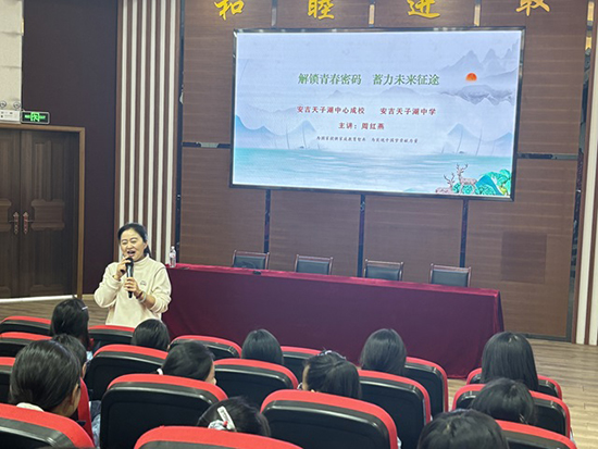近日,安吉縣社區教育學院天子湖分院特邀國家二級心理咨詢師、高級家庭教育指導師周紅燕,為天子湖中學初一200余名女生開展 “解鎖青春密碼 蓄力未來征途” 青春期健康講座,為青春懵懂的少女們撥開成長迷霧。