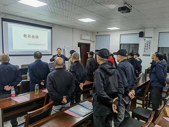 當(dāng)晚7時,培訓(xùn)正式拉開帷幕。授課教師張鶴鳴剛走上講臺,便被眼前的場景打動:30名老兵自發(fā)列隊,雙腳分開與肩同寬,雙手后背相握,跨立的姿態(tài)整齊劃一,仿佛重回軍營時光。“這首歌是咱們老兵的心聲,唱的時候要帶著對黨的忠誠、對軍隊的熱愛!”張老師先詳細(xì)講解《人民軍隊忠于黨》的創(chuàng)作背景,從戰(zhàn)火紛飛的歲月講到和平年代的堅守,讓老兵們再次感受歌曲里的紅色情懷。