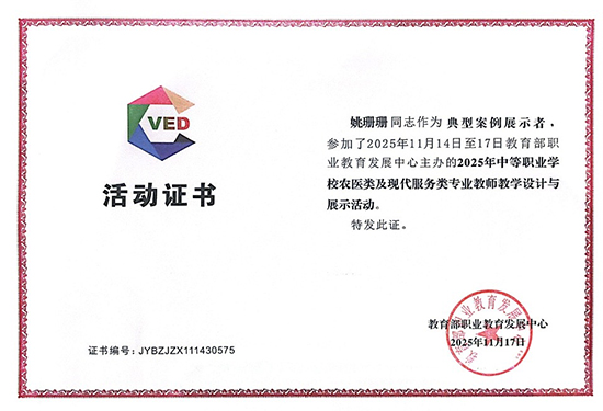 作為中職教育領(lǐng)域的權(quán)威賽事,本次活動(dòng)聚焦專業(yè)教學(xué)與實(shí)際崗位需求的融合,覆蓋農(nóng)醫(yī)類、現(xiàn)代服務(wù)類等多個(gè)專業(yè)方向。該校姚珊珊和徐翱雪兩位老師憑借對(duì)專業(yè)教學(xué)規(guī)律的深度把握與前瞻設(shè)計(jì),在全國(guó)眾多參賽者中脫穎而出。