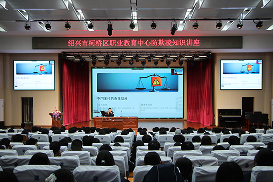 為第一時間響應《法治宣傳教育法》正式施行,11月17日下午,柯橋區職業教育中心緊抓這一國家立法重要時間節點,特邀法治副校長、紹興市公安局柯橋分局安昌派出所丁梁峰警官,為全校師生帶來“反詐+反欺凌”專題法治講座,迅速掀起校園普法新高潮。