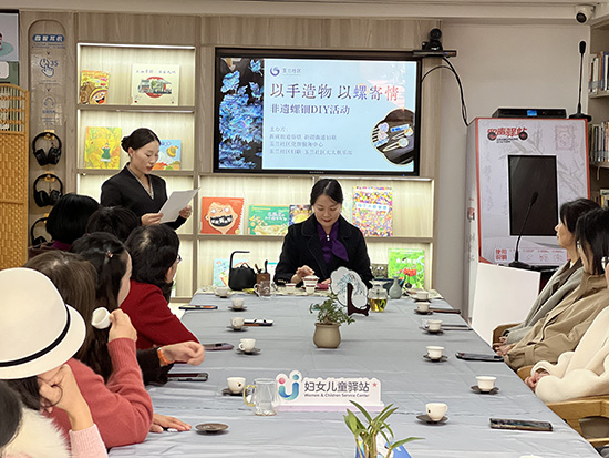 11月20日下午,新碶街道社教中心玉蘭分中心二樓暖意融融,一場以“以手造物,以螺寄情”為主題的非遺螺鈿DIY活動在此開展。本次活動吸引了轄區居民及10余位臺灣太太參與,以傳統工藝為紐帶,既傳承了非遺文化,也拉近了兩岸同胞的社區歸屬感。