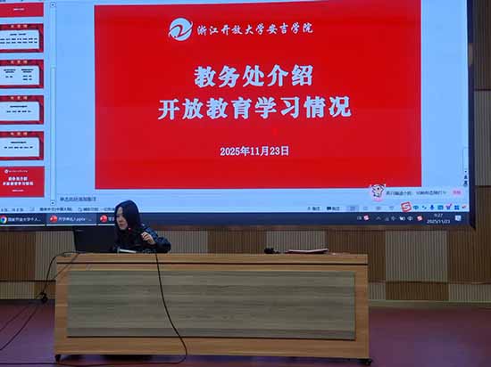 11月23日上午,浙江開放大學安吉學院25秋開放教育新生開學典禮在學校報告廳隆重舉行。25秋開放教育本專科新生齊聚校園,滿懷憧憬與希望,開啟人生逐夢的嶄新航程。