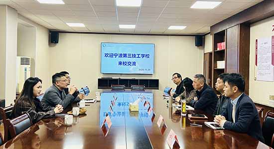 11月25日上午,寧波第三技工學校黨支部書記兼校長徐飛波一行5人來到海寧衛生學校(海寧市綜合高級中學)開展交流活動。海寧衛生學校黨總支書記顧忠強、校長陳杰、副校長沈孝麗等領導熱情接待并陪同交流。