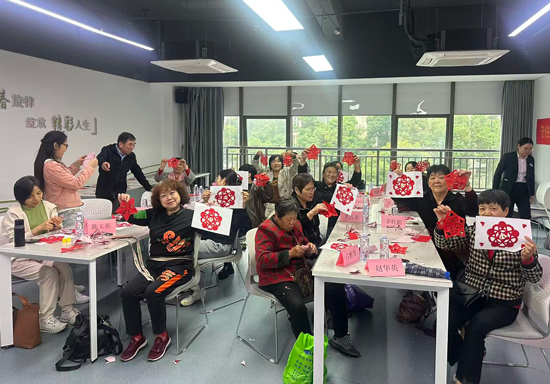 培訓中,居民們的學習熱情持續高漲。大家從基礎折疊學起,認真勾勒圖案,小心翼翼裁剪,遇到難題時要么鄰里間相互探討,要么主動向老師請教,現場氛圍熱鬧又溫馨。不一會兒,象征吉祥的生肖剪紙、寓意美滿的福字窗花、充滿江南韻味的水鄉剪影、靈動鮮活的花卉紋樣等作品紛紛出爐,每一幅都飽含創意與巧思,歡聲笑語彌漫在各個社區課堂。