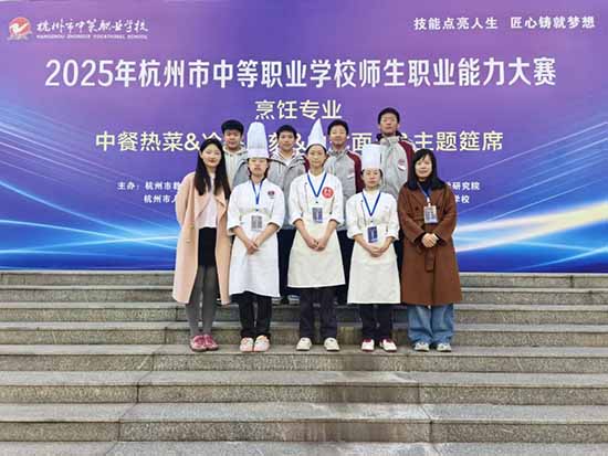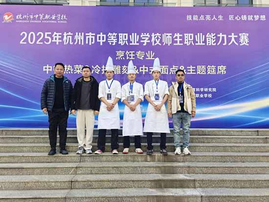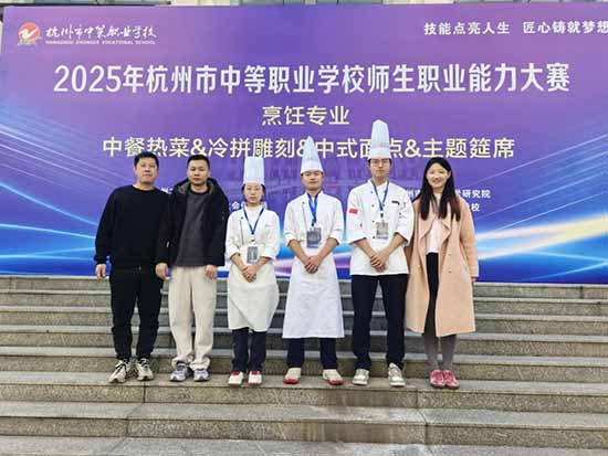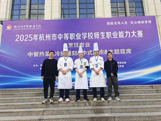 金秋時節,碩果飄香;賽場競技,捷報頻傳!近日,2025年杭州市中等職業學校師生職業能力大賽(烹飪、旅服專業)圓滿落幕。杭州市良渚職業高級中學旅烹專業師生憑借扎實的專業技能、出色的應變能力和默契的團隊協作,在激烈角逐中脫穎而出,共攬獲2金5銀3銅的亮眼佳績,為學校贏得了榮譽!