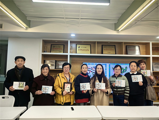 兩個多小時的活動很快接近尾聲,學員們紛紛展示自己的成果:有的剪了鮮活的瓜果,仿佛能聞到果香;有的剪了綻放的牡丹,花瓣層層疊疊盡顯嬌艷;還有的將“豐收”與“繁花”元素結合,創作出充滿生活氣息的場景畫。大家拿著自己的作品互相拍照留念,不少人還主動加了蔣娟老師的微信,追問后續有沒有進階課程。