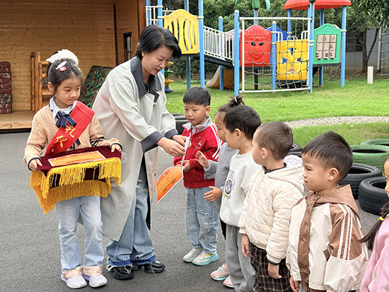 11月20日上午,諸暨市楓橋鎮(zhèn)中心幼兒園洋溢著歡樂的氛圍。中三班幼兒陳哲手持獲獎證書,臉上滿是喜悅——他創(chuàng)作的《消防安全》繪畫作品,在幼兒園“你好,火焰藍”消防主題繪畫比賽中斬獲一等獎,不僅接受了園長李婉萍的頒獎,還留下了珍貴的合影。