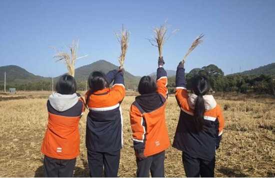 在農事體驗環節,學生干部們深入田間地頭,參與割稻、脫粒等農耕勞作。大家挽起褲腳、踏入泥地,在汗水與歡笑中體驗勞動的艱辛與豐收的喜悅,深刻領悟到“一粥一飯,當思來之不易”。勞作結束后,同學們還將收割的稻谷制作成稻草花束,留下難忘的勞動記憶。