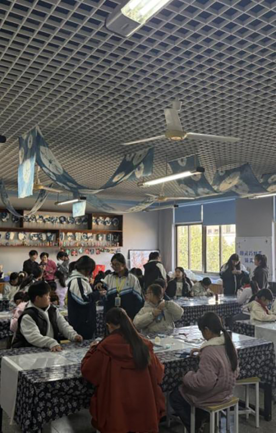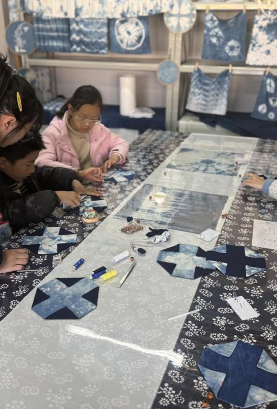 活動伊始,剡溪小學(xué)的教室里便彌漫著探索與期待的氣息。桌上擺放的,不再是普通的書本與文具,而是一塊塊經(jīng)由特色藍(lán)染課程浸染出的、色澤深邃、紋路獨特的藍(lán)印花布。這些布料,如同承載著天空與海洋秘密的畫卷,正等待著小小藝術(shù)家們賦予它們新的生命。