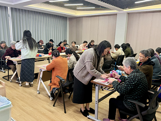 家住杜鵑小區的王阿姨拿著戳針有些手生,戳了幾下羊毛還是松散的,急得皺起了眉頭,坐在她邊上的陳阿姨立馬手把手教她,“王大姐,您手腕稍微用力,戳針要垂直往下戳,這樣羊毛才能更緊實。”