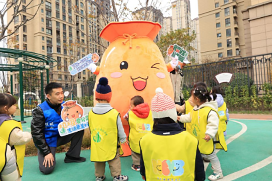 “小錦垃圾分類學堂”上,工作人員用卡通圖示拆解四類垃圾知識,直觀易懂。隨后的“投擲大作戰”中,孩子們手持分類卡片,精準投向對應顏色垃圾桶,歡呼聲里輕松鞏固了分類技能。