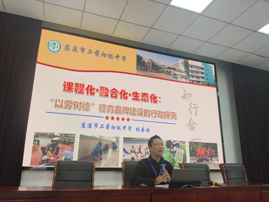 本次培訓注重拓寬育人格局與深化專業素養。培訓最后階段,學員們前往寧波進行深度交流學習。在慈溪市衛前初級中學,學員們認真聽取了教導處副主任林森培所作的專題報告《課程化·融合化·生態化——“以勞樹德”德育品牌建設的行動探究》。報告系統介紹了學校在勞動教育方面的創新實踐與寶貴經驗,從課程設計到具體落實的各個環節,為學員們開展勞動教育提供了清晰可行的思路。