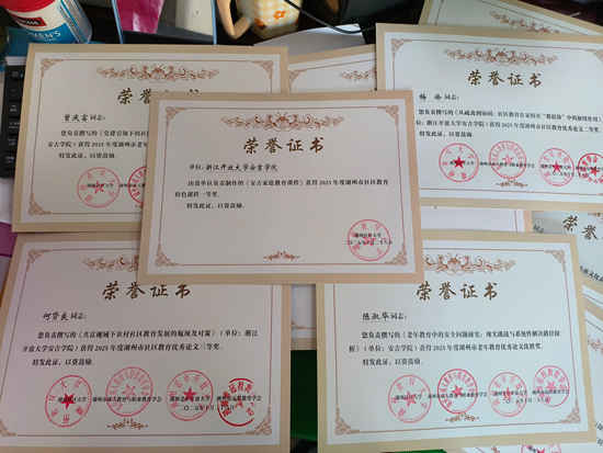 近日,2025年度湖州市社區教育、老年教育典型案例、優秀論文及特色課程評選結果揭曉。浙江開放大學安吉學院積極響應《關于開展2025年度湖州市社區教育、老年教育典型案例和優秀論文征集活動的通知》(湖社大〔2025〕1號)與《關于開展2025年度湖州市社區教育特色課程評選活動的通知》(湖社大〔2025〕2號)文件號召,精心組織教師參與申報,憑借扎實的教科研實力與特色鮮明的實踐成果,在三大類別評選中均有斬獲,一舉奪得一、二、三等獎多項榮譽。