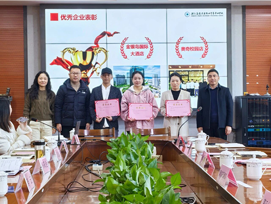 會議對金銀島國際大酒店等3家優秀合作企業進行表彰。國貿花園經理駱楊雪、金銀島陸主管先后分享合作經驗,均感謝學校搭建的優質平臺,表示將持續深化與校方的協作。