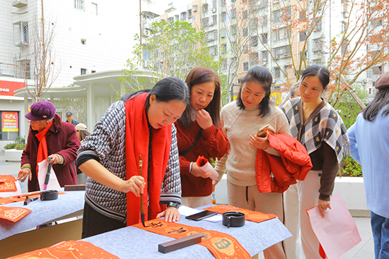 紅紙鋪展,墨韻飄香。一幅幅筆力遒勁的“福”字躍然紙上,“國富民強萬物盛 人和家興百業昌”“和順一門添百福 平安二字值千金”“一帆風順全家福 萬事如意滿門春”等寓意吉祥的春聯,被聞訊而來的群眾爭相領取,大家手捧墨寶,臉上洋溢著幸福的笑容。