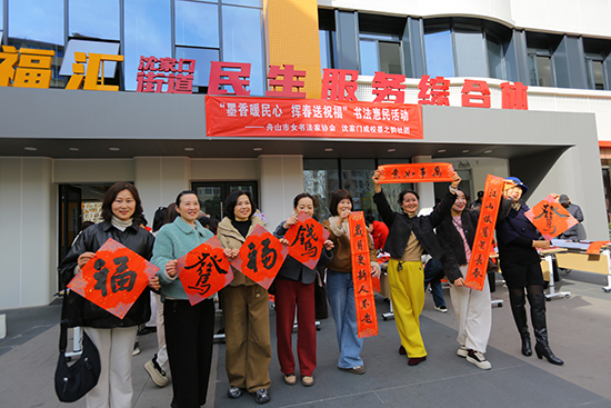 12月23日,沈家門街道成校墨之韻書法社團的10位學員,攜手舟山市女書法家協會的成員,走進沈家門街道民生綜合體,揮毫潑墨寫春聯、送福字,為轄區群眾送上冬日里的文化暖意。這是該社團成立兩年來,又一次深入基層服務群眾,盡顯其與日俱增的社會影響力。