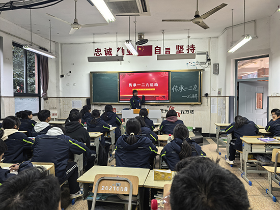 在各團支部的主題團課上,班主任和團干部們化身“紅色講解員”,通過老照片、歷史紀錄片、情景講述等多種形式,生動再現了一二·九運動的壯闊歷程。為擴大活動覆蓋面,營造全員參與的濃厚氛圍,校團委聯合德育處開展“匠心筑夢 技能報國”主題宣講。校團委書記倪夢霞、校德育主任徐先鋒將一二·九運動的歷史意義與當代職校生的成長成才緊密結合,帶來了兩場有溫度、有深度的宣講。宣講結束后,全體師生莊嚴列隊,在領誓人學生會主席的帶領下,大家高舉右拳,字字鏗鏘:“銘記一二•九歷史,傳承愛國精神;錘煉專業技能,勇擔時代使命;勤學善思篤行,不負青春韶華;匠心筑夢強國,書寫復興華章!”激昂的誓言回蕩在校園上空,既是對革命先輩的致敬,更是職教青年矢志報國的堅定承諾。“一二·九運動的硝煙早已散盡,但‘愛國、進步、民主、科學’的精神永遠不會過時。”副校長劉著程在活動總結時強調:“作為職教青年,大家既要銘記歷史,更要立足當下——在實訓室里精益求精,在課堂上勤學善思,在志愿服務中傳遞溫暖,這就是對一二·九精神最好的傳承。”