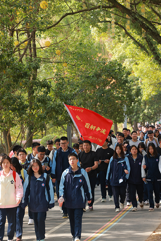 沿途,學校精心設置了五個打卡點,分別為“揚帆啟航”“志向高遠”“思如泉涌”“筆下生輝”和“金榜題名”。這些打卡點不僅巧妙地串聯起了毅行的路線,更寓意著高三學子從立志、積累、突破到圓夢的完整成長軌跡。同學們在每個打卡點都鄭重地蓋上印章,然后合影留念。那一張張青春洋溢的笑臉,在鏡頭前定格成永恒,他們將自己的理想與誓言鐫刻在了這場征程之上。