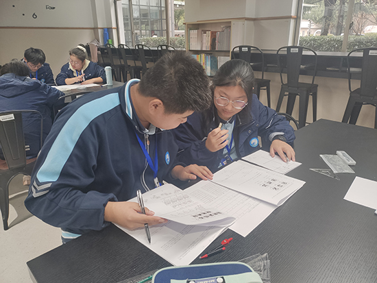 為確保競賽順利開展,學校成立了專項工作組,由陳洪良老師擔任總負責,統籌設計方案。報名統計工作由趙燕明(24級)和李國政(25級)老師分年級完成;出卷任務由姚佳錦(25級)和陳少波(24級)老師負責;監考環節由張梓園、陳洪良、周琳、袁蘊琳四位老師共同承擔;閱卷工作由楊佳琴、劉小軍、余沛澤、金浩飛老師協作完成;李海偉老師負責全程攝影記錄;成績統計則由蘇曉麗和陳洪良老師聯合完成。各班數學老師于12月初就啟動了賽前培訓,通過課堂滲透高中數學思維技巧、強化運算能力,并結合生活實例引導學生運用數學建模解決實際問題,為競賽奠定基礎。