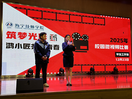 “筑夢光影”間綻放創(chuàng)意火花,二十部佳作詮釋多元校園風采。2025年12月23日海寧技師學(xué)院2025年“筑夢光影,鴻小匠共繪青春”校園微視頻大賽在熱烈氛圍中圓滿落幕。全校各學(xué)院20支參賽隊伍齊聚賽場、同臺競技,同學(xué)們以創(chuàng)意鏡頭捕捉校園百態(tài),用鮮活畫面詮釋青春內(nèi)涵,為現(xiàn)場師生呈現(xiàn)了一場兼具思想深度、藝術(shù)質(zhì)感與觀賞價值的視聽盛宴。