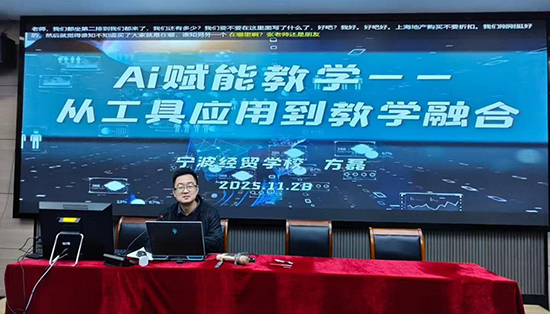 下午,寧波經貿學校的方磊老師帶來了題為《AI賦能教學——從工具應用到教學融合》的專題講座。講座中,方老師梳理了AI從1950年圖靈測試到如今“百模大戰”的發展歷程,解讀了國家及浙江省關于AI教育的相關政策文件,重點分享了AI在教學資源獲取、課件制作、數據分析、課堂互動等場景的實用應用,介紹了WPS、剪映等工具及多款AI平臺的操作技巧,詳解了精準提示詞的設計框架與使用方法。同時,他強調教師應辯證看待AI,在借助技術提升教學效率的同時,堅守教育本質,做好技術理性的駕馭者與教育溫度的守護者,為在場師生帶來了兼具理論高度與實踐價值的AI教學指引。