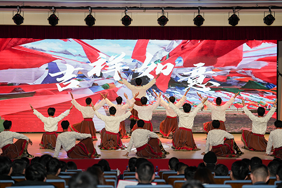 音樂情景劇《一張“涂鴉”的答案》通過涂鴉少年的成長故事,生動(dòng)詮釋了學(xué)校“以生為本、因材施教”的教育理念。歷屆校友帶來的歌曲串燒《我的青春年華》滿含對(duì)母校的眷戀與感恩。2007屆畢業(yè)生、平湖市優(yōu)秀民營企業(yè)家俞佳健作為校友代表登臺(tái)分享校園回憶與創(chuàng)業(yè)心得,向母校送上真摯祝福。藏舞《吉祥如意》展現(xiàn)了學(xué)校對(duì)口支援四川省若爾蓋縣技能人才培養(yǎng)的豐碩成果,傳遞了東西協(xié)作、教育共富的使命擔(dān)當(dāng)。來自越南大南大學(xué)的師生帶來歌曲《你來我往有情緣》,展現(xiàn)了多元文化交融的魅力,彰顯了學(xué)校響應(yīng)國家號(hào)召、推進(jìn)“職教出海”的開放辦學(xué)格局。