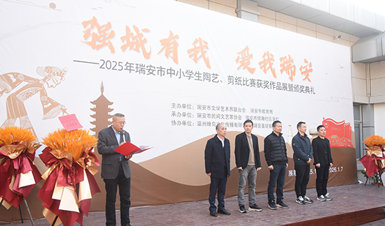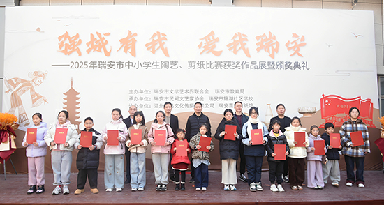 12月27日上午,瑞安市中小學生陶藝、剪紙大賽獲獎作品展在瑞安書畫院隆重開幕。瑞安市文聯黨組成員、副主席楊圣樹,市教育局學生科科長蔡海東,市文聯秘書長、辦公室主任虞冠偉,市民間文藝家協會副主席胡建,錦湖社區學校常務副校長、市民協副主席張再益等嘉賓出席活動。獲獎學生、指導老師及家長代表共同參與了這場藝術盛會。開幕式由瑞安市民間文藝家協會主席林良爽主持。