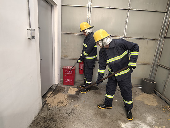 理論培訓結束后,全體參訓人員移步實訓區域進行實戰演練。演練模擬危化品存儲室內試劑瓶發生泄漏的情景,應急分隊成員迅速反應,規范穿戴防護裝備進入現場,按照應急預案進行泄漏物處置與擴散控制。整個過程組織有序、操作規范,達到了預期演練效果。