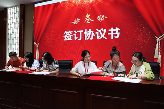 隨后,師徒結對協議書簽訂環節溫情上演。兩對師徒代表率先邁步上臺,在全場目光的見證下,鄭重落筆簽下姓名;其余師徒亦在原座同步簽約。這一紙協議,不只是責任的鄭重約定,更是經驗薪傳、成長許諾的溫暖象征。