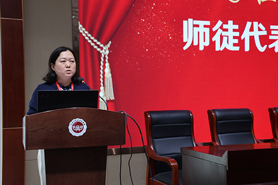 師徒代表發言環節,溫情滿溢。教學導師代表朱培培,以指導之責立誓,以“三心”為尺,丈量教育初心:以匠心打磨每堂課,憑耐心陪伴青年教師成長,用赤子心堅守教育初心;提 “共生”理念,認為青藍結對是雙向成長,青年教師的活力能促師傅再學習,師傅的經驗可助青年教師少走彎路;還以“遠見”寄語,愿做引路人與同行者,與大家共勉“一輩子做教師,一輩子學做教師”,助力構建優質課堂。承諾毫無保留分享教學經驗與巧思,為新教師成長掃去彎路;德育導師代表陳瑩,細數德育日常的“細水長流”——晨光迎生、耐心伴談,憶初為班主任的手足無措,念老教師幫扶之恩,愿作青年教師“同行者”,共解難題、同學新思,傾囊相授盼其綻放德育光彩。
