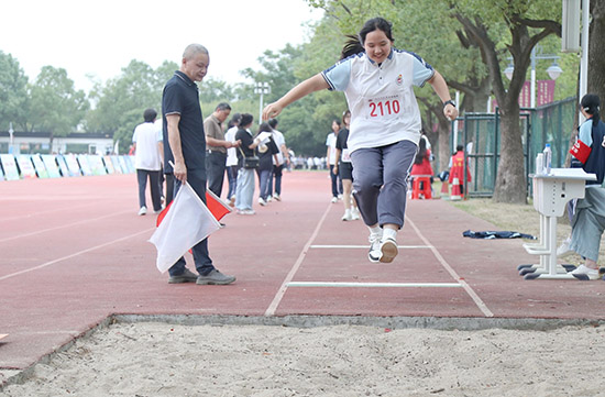 田賽場地同樣精彩紛呈。跳高運動員輕盈騰空,不斷超越新的高度;跳遠選手助跑、起跳、騰空、落地,奮力躍向更遠的沙坑;鉛球運動員則用力量詮釋著“厚積薄發”,劃出優美的拋物線。每一個項目的角逐,都不僅是體能的比拼,更是技巧與心理的較量,充分展示了學校學子全面的身體素質和不屈不撓的拼搏精神。