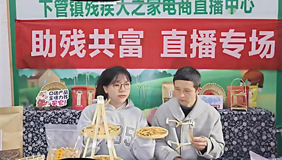直播助農,首戰告捷。最令人期待的環節,當屬“虞里·助殘商品匯”首場直播帶貨。此前,學校電商專業教師已對殘疾人之家的朋友們開展系統培訓,并選出小杰、小鋒兩位擔當首次直播的土特產代言人。當天,師生們與這兩位“家鄉土特產推薦官”默契搭檔,提前緊鑼密鼓地完成場景布置、商品陳列。上午10時10分,直播準時開播。鏡頭前,小杰、小鋒從容自信地推介筍干菜、年糕片、番薯干等本地農特產,電商專業學生則從旁協助,介紹產品特色、解答網友疑問。這場充滿溫情的直播,吸引了1485人次在線觀看,斬獲69單訂單,成交額突破2000元,轉化率高達4.65%,交出了助殘共富的亮眼“首戰成績單”。