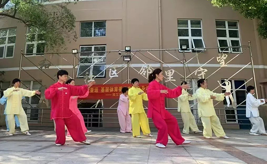 在清晨的第一縷陽光下,太極班的學員們已緩緩拉開架勢,伴隨著輕柔的音樂,他們的動作流暢而富有韻律。