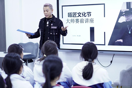 文化節的重頭戲“甌匠名家講壇”如期開講。學校領導與數百名學生齊聚一堂,共同聆聽兩位杰出校友——國家級非遺(甌?。┐硇詡鞒腥苏率澜芘c溫州市甌海區國際商會副會長吳輝盛的精彩分享。兩位名家雖身處不同領域,卻以同樣璀璨的“匠心”,為學弟學妹們照亮了截然不同卻又殊途同歸的成長之路。
