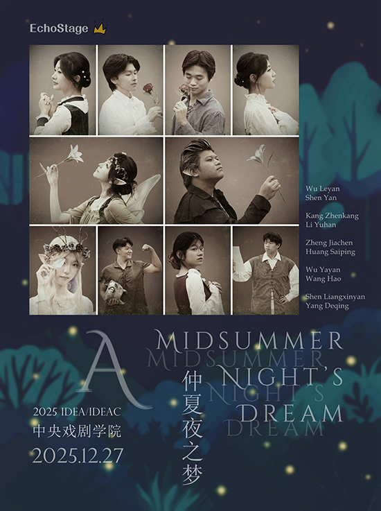 2025年12月25日至28日,浙江開放大學臨平學院EchoStage英語戲劇社的十位學生演員在指導教師姜琢瑕、童小琴老師的帶領下遠赴北京,參加IDEAC青少年國際戲劇文化交流展暨第八屆“藍斗篷”青少年創意戲劇國際展評,在中央戲劇學院主劇場演繹了由團隊改編的莎士比亞經典作品《仲夏夜之夢》。