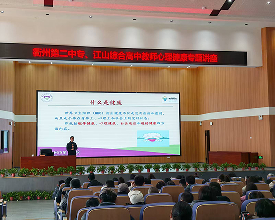 為切實關(guān)懷教師身心健康,緩解教育教學(xué)壓力,提升職業(yè)幸福感與心理調(diào)適能力,1月9日下午,衢州第二中等專業(yè)學(xué)校、江山綜合高中舉辦2026年首場心理健康教育講座。活動特邀衢州市第三醫(yī)院精神科主任醫(yī)師、資深心理治療師鄭利鋒蒞臨授課,為全體教師送上了一場干貨滿滿的“心靈賦能盛宴”。