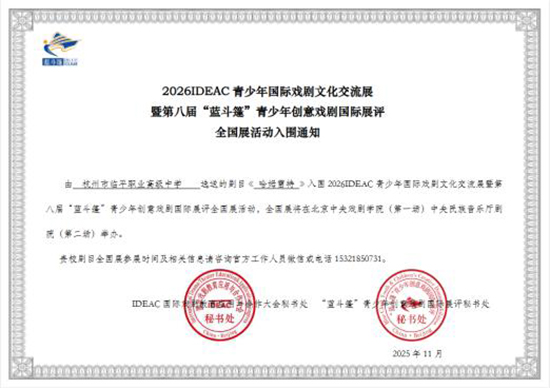 此次“IDEAC戲劇教育實踐基地”的授牌與E-Wings的精彩展演,是臨平職高英語戲劇教育“教”與“學”雙向奔赴的生動成果。未來,臨平職高將以實踐基地為新起點,繼續(xù)深耕課程建設、豐富實踐平臺、強化師資培育,讓英語戲劇教育真正成為滋養(yǎng)學生全面發(fā)展的沃土,助力更多孩子在語言運用與戲劇演繹的碰撞中,收獲共情力、創(chuàng)造力與團隊精神,綻放獨特光彩。(杭州市臨平職業(yè)高級中學)