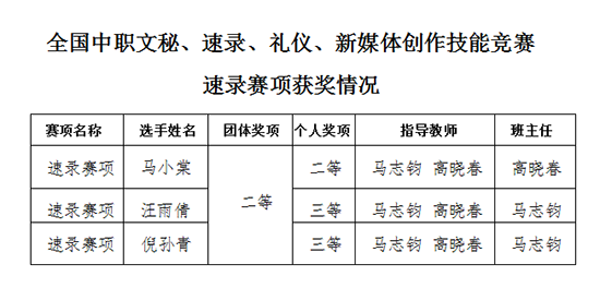 喜訊傳來(lái),捷報(bào)飛至!為期三天的2025全國(guó)中職文秘、速錄、禮儀、新媒體創(chuàng)作技能競(jìng)賽在浙江省桐鄉(xiāng)市衛(wèi)生學(xué)校圓滿收官。杭州市富陽(yáng)區(qū)職業(yè)教育中心學(xué)子憑借扎實(shí)的專業(yè)功底、出色的臨場(chǎng)發(fā)揮和卓越的綜合素養(yǎng),一路披荊斬棘,在全國(guó)300多名選手,16個(gè)團(tuán)體及個(gè)人比賽中,一舉斬獲9金7銀8銅的好成績(jī),用實(shí)力書(shū)寫了中職生的技能榮光。謹(jǐn)此,向所有獲獎(jiǎng)同學(xué)表示最熱烈的祝賀!向辛勤指導(dǎo)的老師們致以最崇高的敬意!向關(guān)心支持此項(xiàng)競(jìng)賽的領(lǐng)導(dǎo)們表示最誠(chéng)摯的感謝!