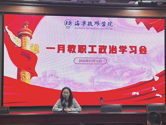 為深入學習貫徹國家重要精神,加速推進教育數字化轉型,2026年1月16日,海寧技師學院召開了1月全體教職工政治學習會。會議由副校長王立群主持,全體教職工齊聚一堂,在政策學習與技術賦能的深度融合中,凝聚起推動技工教育高質量發展的奮進力量。