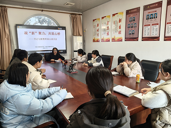 冬陽暖煦,情誼融融。1月13日下午,寧波東錢湖旅游學校行政樓三樓會議室內氣氛既溫馨又熱烈,一場以“凝心聚力,共筑心橋”為主題的書記與新教師談心談話會在此舉行。學校黨總支書記徐春燕、校慶辦主任張良斌、綜合組教研組長胡科平與十位新教師圍坐一堂,敞開心扉,共話成長。