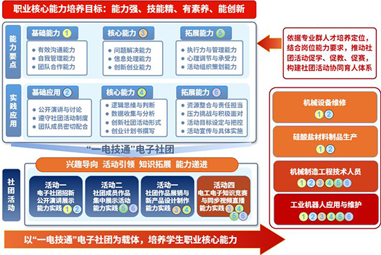 學生社團是技工院校學生自我教育和自我成長的重要載體,具有強大的育人功能,是培養學生職業核心能力的重要陣地。面對智能制造產業升級對復合型技術技能人才的新要求,學生社團的功能亟待從“豐富課余生活”向“深化育人實效”轉型升級。本案例以江山高級技工學校“一電技通”電子社團為載體,系統闡述了其如何從一個傳統的電子興趣小組,演變為驅動職業核心能力培養、反向賦能“硅酸鹽材料智能制造”專業群建設的戰略平臺。
