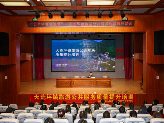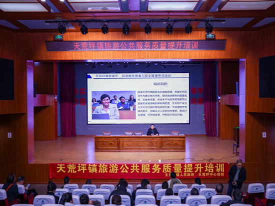 1月15日下午1:30,在馬年春節(jié)黃金周即將到來之際,由安吉縣天荒坪鎮(zhèn)人民政府主辦,安吉縣大余村文旅專班、安吉縣公安局天荒坪鎮(zhèn)派出所和安吉縣社區(qū)教育學院天荒坪分院(天荒坪中心成校)聯(lián)合開展的“大余村共富課堂”——旅游公共服務質量提升培訓班在山河村文化禮堂舉行,來自該鎮(zhèn)余村村等4村的49位民宿(農家樂)業(yè)主參加了培訓。