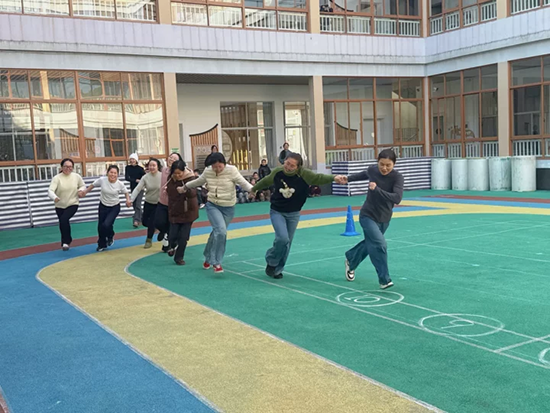 賽場之上,萌娃們活力四射;賽場之外,教師們也不甘示弱。一場緊張有趣的“滾雪球”比賽精彩上演,三個年段的教師各組成十人小組,哨聲一響,首位教師飛速沖向?qū)γ妫c同伴手拉手后共同折返,隊伍如滾雪球般不斷壯大。賽道上,教師們的身影矯健颯爽,這場比賽不僅是速度的較量,更是團隊默契的考驗。大家紛紛表示,輸贏并非目的,在協(xié)作中收獲的快樂才最為珍貴。